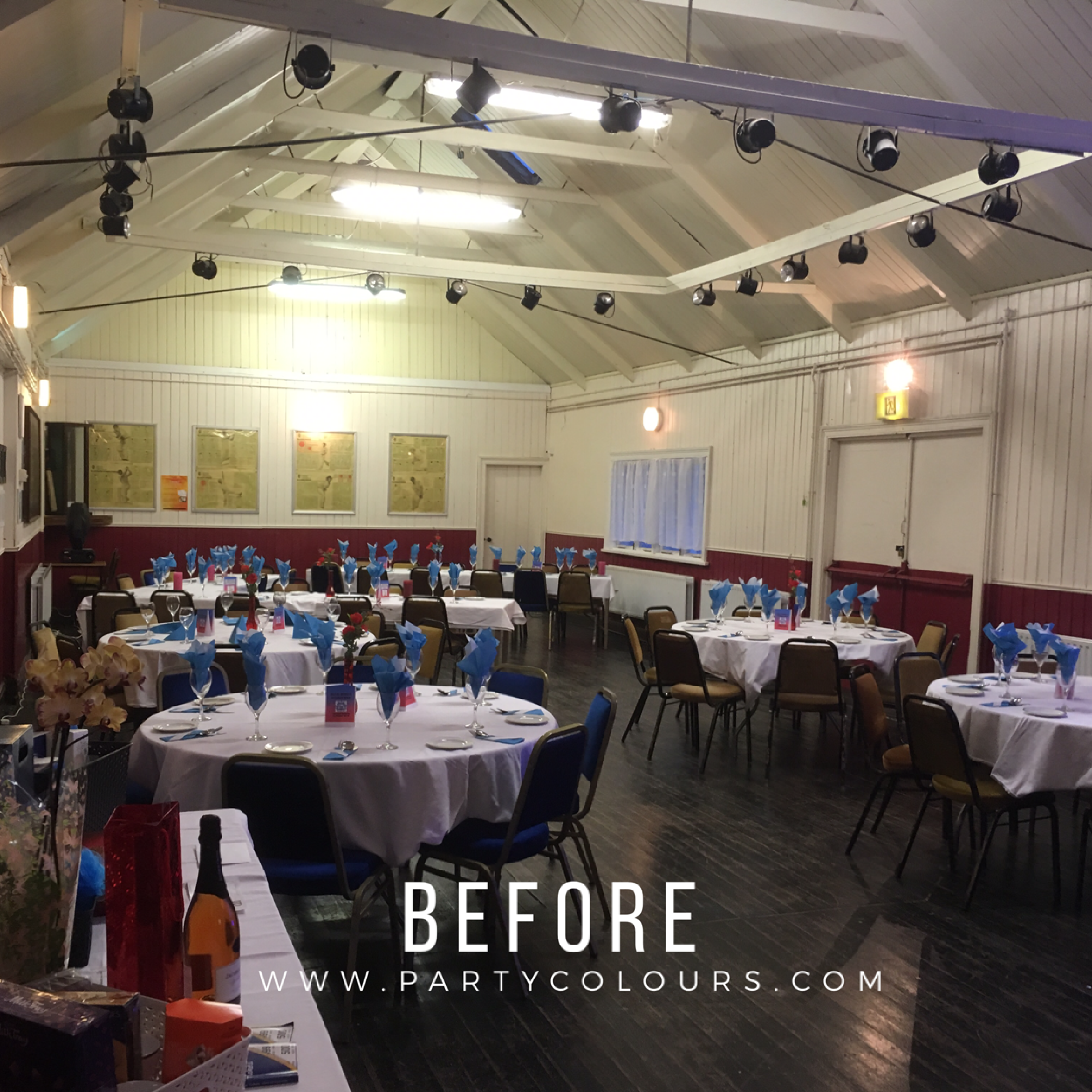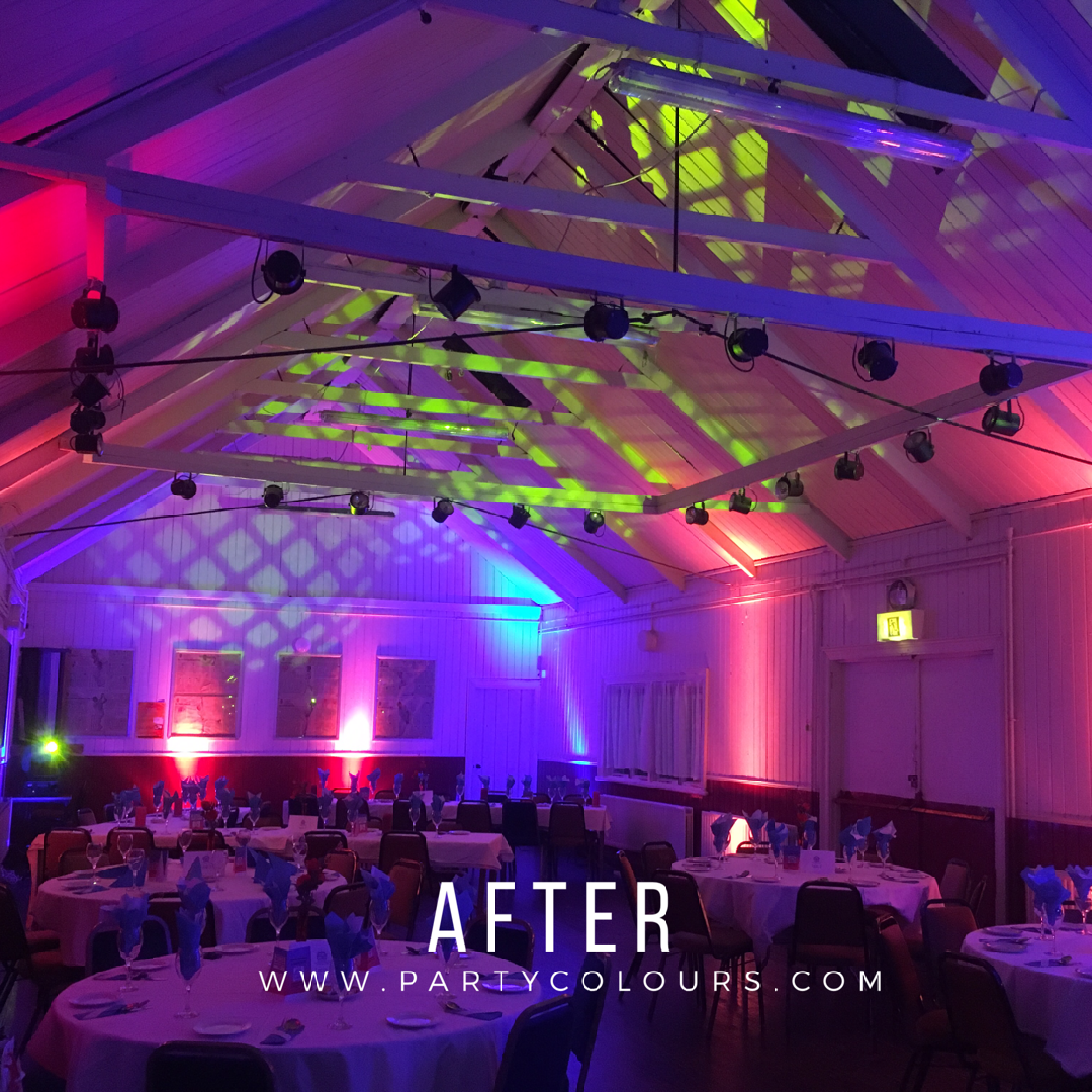 “It was amazing. As soon as our guests arrived they were stunned by the dramatic transformation PartyColours lighting made to our dining hall.